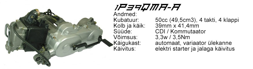 Spetsiaalselt Teie jaoks toome esile kõige populaarsema 4 taktilise Hiina rolleri mootori Eestis. Meil on GY6 139QMB (1P39QMB) mootorile üle 500 mootori detaili. Lisaks kõikvõimalikke variante elektriosi.