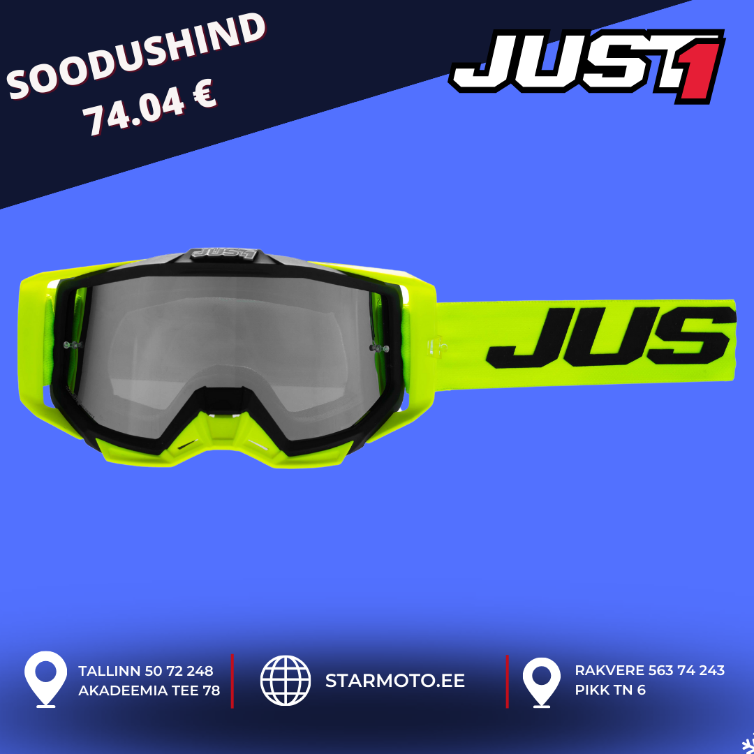 Lisaks kiivritele pakub Just1 ka valikut prille, mis on loodud pakkuma maksimaalset nähtavust ja kaitset. Prillidel on lai vaateväli, udususe- ja kriimustuskindlad kattekihid ning mugav sobivus, mis püsib paigal ka kõige intensiivsemate sõitude ajal.